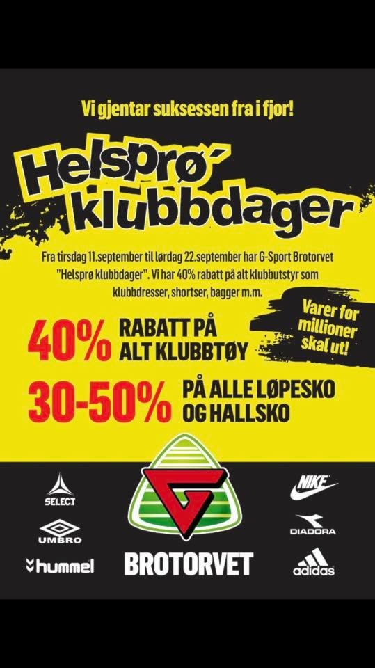 LØP OG KJØP !! HELSPRØE KLUBBDAGER 11.-22. SEPTEMBERG-sport starter i dag helsprøe klubbdager. Si ifra du kommer fra LIF Turn og få kjempe rabatter.